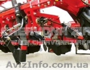 • Дополнительная установка промежуточных чизельных стоек со смещением в пол шага основных стоек с разным вариантом лап (копьевидная с плоскорежущими крыльями) позволяет обрабатывать почву на глубину до 25-30 см по всему срезу пласта, обеспечивая крошение и частичное перемешивание почвы без выноса лишнего слоя.